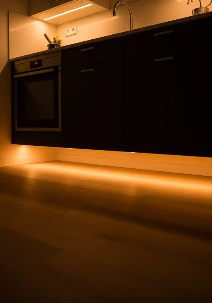 9. Slim Toe-Kick Lighting for Floating Floor Effect