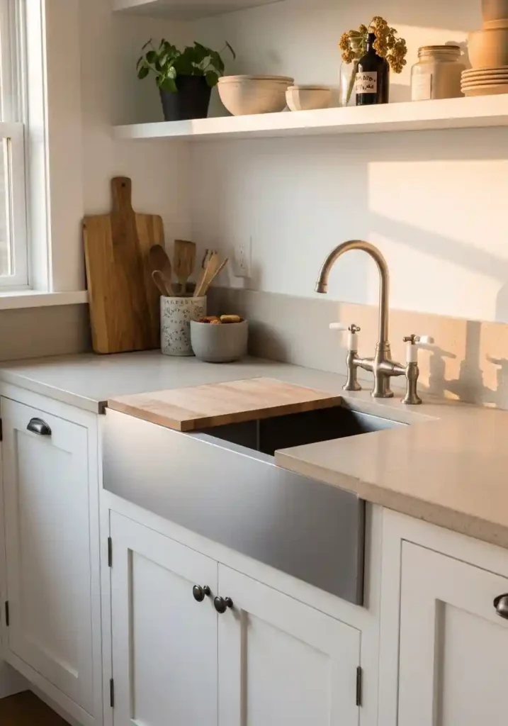 The practical working benefit of an undermount sink in a tiny kitchen is the ability to use the sink’s interior as functional counter extension when the basin is empty — a cutting board or mixing bowl can rest half in the sink and half on the counter, effectively extending the available preparation surface into the sink’s volume. This counter extension function is particularly valuable in a tiny kitchen where every additional centimeter of preparation surface has real daily functional value. Undermount installation requires a solid surface countertop material that can support the sink’s weight without cracking.