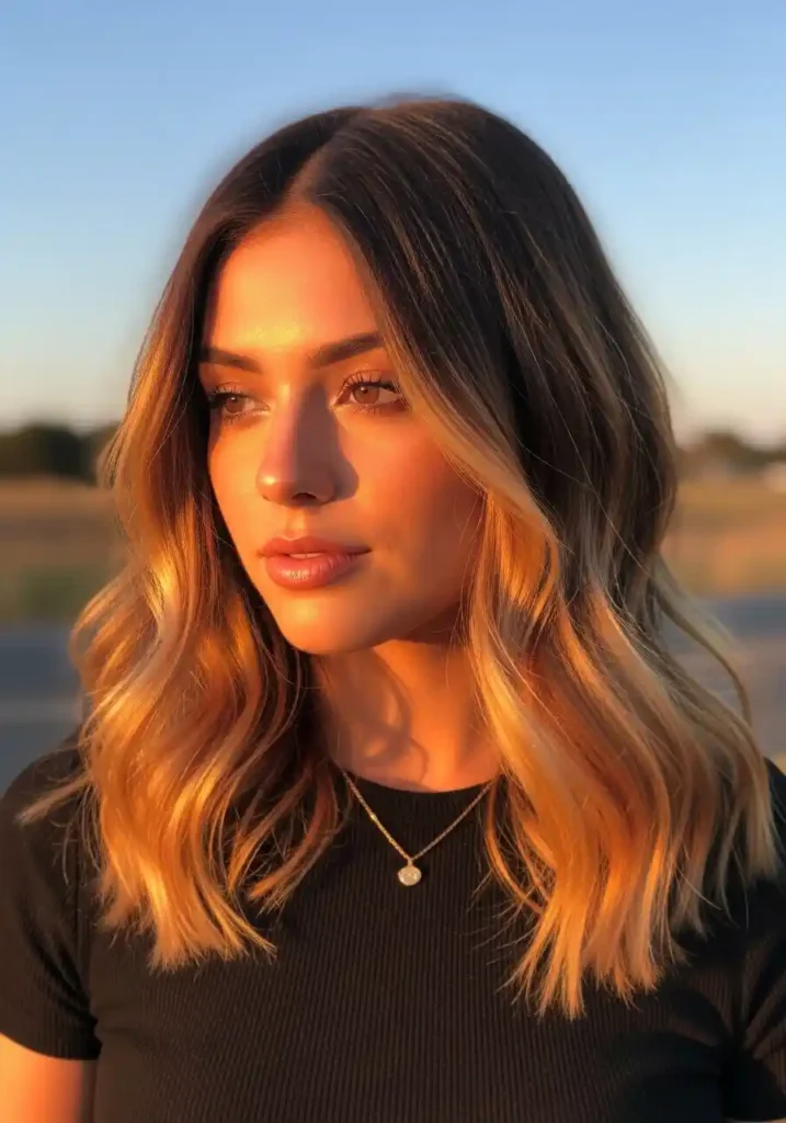 Golden hour blonde balayage captures the most atmospheric and most specifically warm quality of late afternoon sunlight in hair color form — the hand-painted sections are calibrated to the specific vivid golden-warm tone of the actual golden hour light, creating a balayage that appears to permanently contain the warmth of the most beautiful hour of natural light regardless of the actual light conditions the hair is seen in. This specific warm golden calibration creates a hair color of genuinely extraordinary atmospheric beauty.