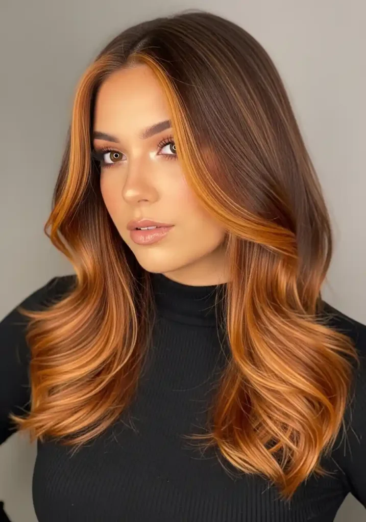 Warm amber highlights create the most jewel-like and most specifically concentrated warm brightness available through a highlighting technique — the deep amber-golden quality of true amber sections creates highlights that appear almost gemstone-like in the specific, rich warmth of their glow against the warm brunette base. In warm directional lighting, warm amber highlights appear to generate their own concentrated warmth rather than simply reflecting available light, creating a jewel-bright quality of extraordinary beauty.