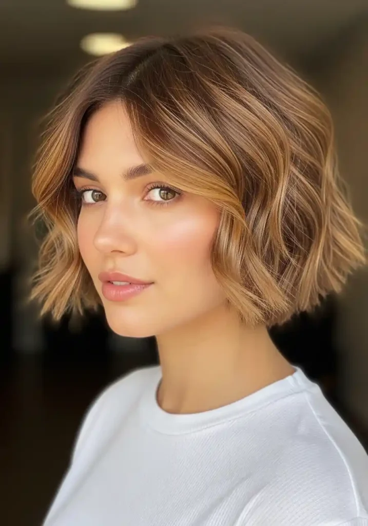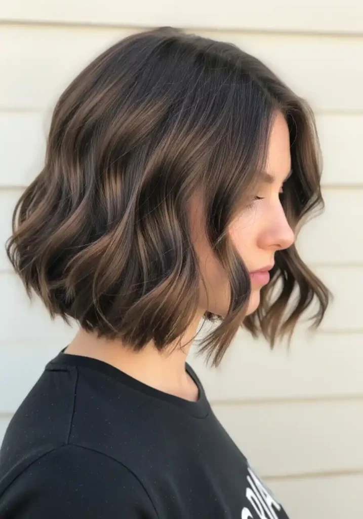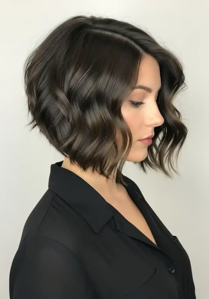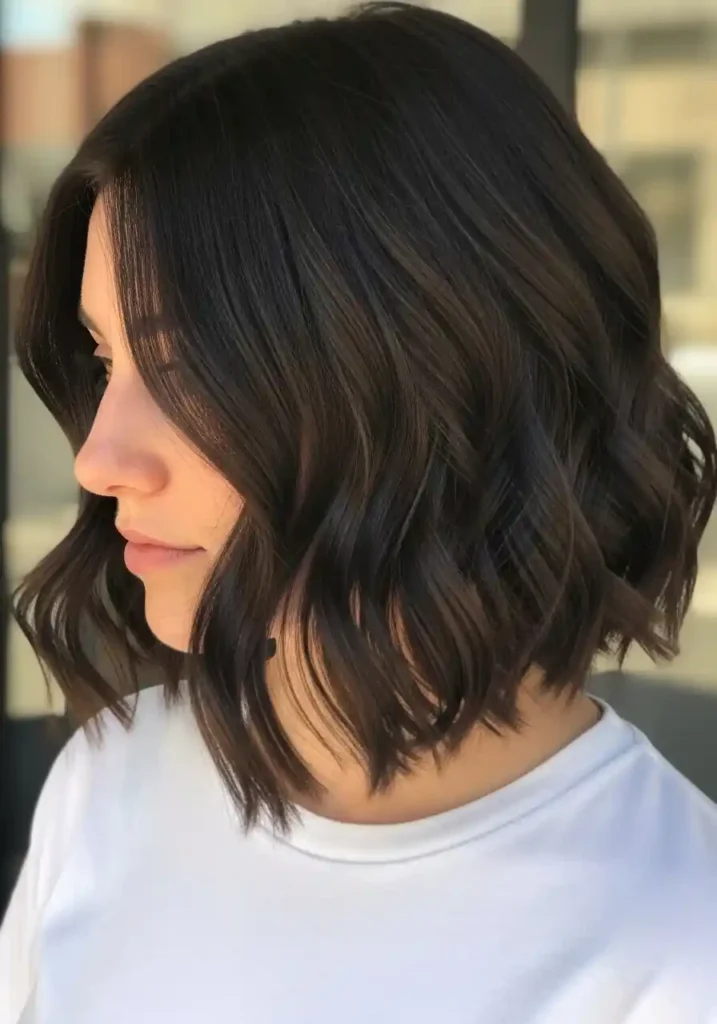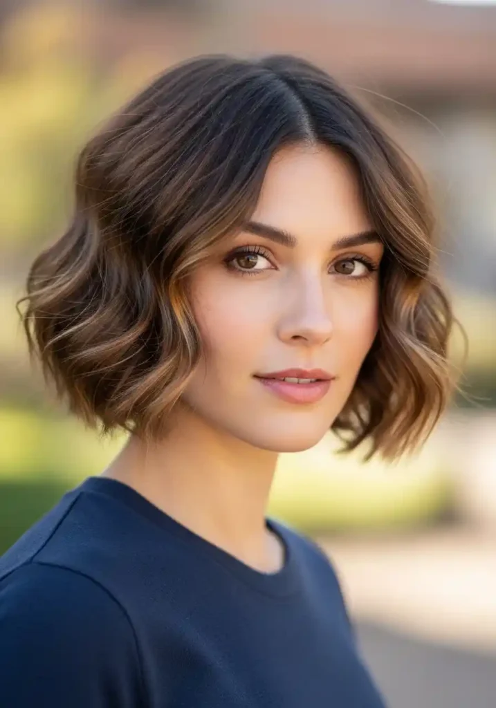 The rounded, full silhouette that naturally wavy hair creates within a jaw-length bob is one of the most beautifully distinctive and instantly recognizable expressions of this texture at short to medium length, with the waves filling the bob’s silhouette from every angle with a dimensional, bouncy fullness that straight bobs attempt to achieve through heat styling but can never quite replicate with the same authentic, self-generating quality. The wavy bob also requires remarkably little daily styling effort to maintain its beautiful, full shape, because the natural wave pattern provides its own structure and volume without any heat tool involvement or volumizing product application, making it one of the most genuinely effortless and consistently beautiful haircut choices available to naturally wavy-haired women at this length.