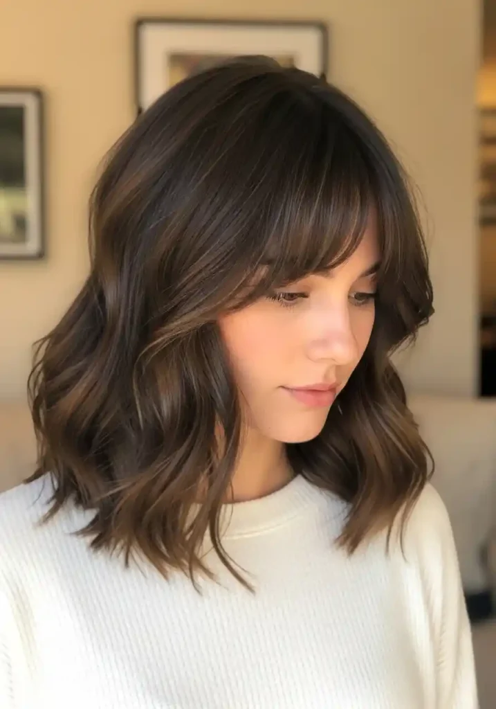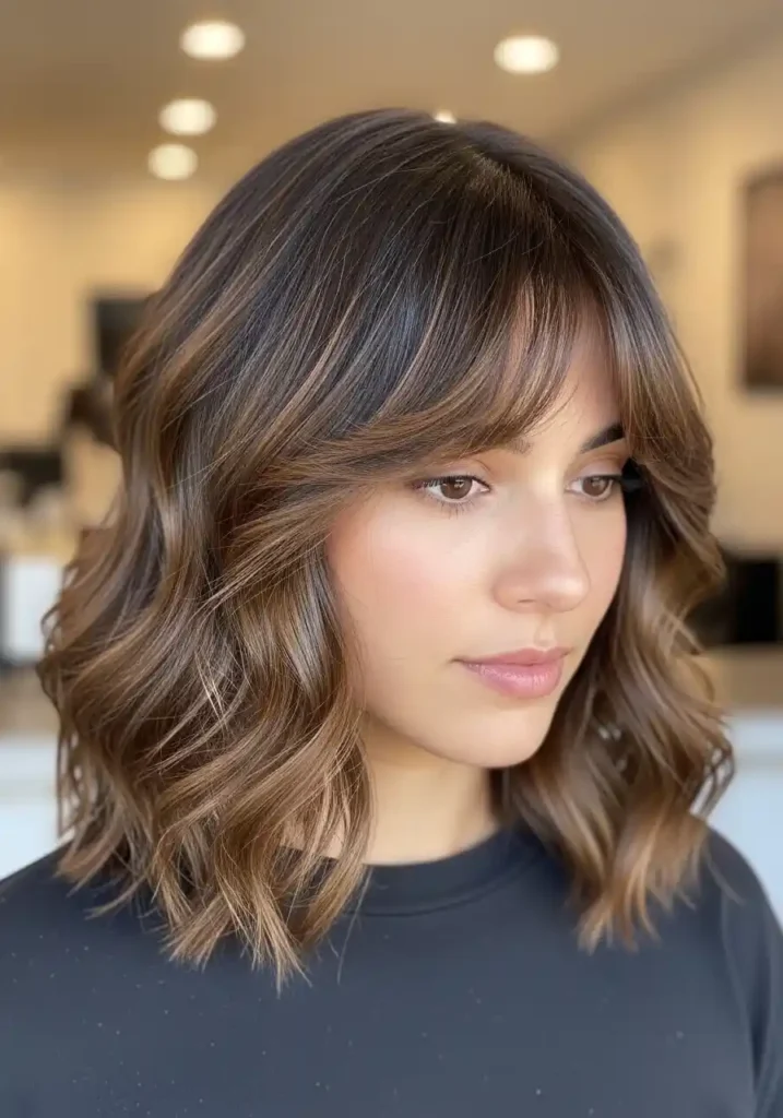 7. The Wavy Curtain Bang Lob